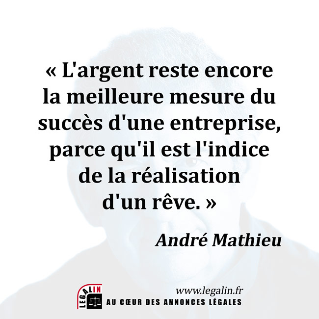 L'entreprise vue par André Mathieu : "L'argent reste encore la meilleure mesure du succès d'une entreprise, parce qu'il est l'indice de la réalisation d'un rêve."