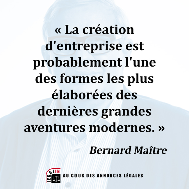 La création d'entreprise vue par Bernard Maître : « La création d'entreprise est probablement l'une des formes les plus élaborées des dernières grandes aventures modernes. »