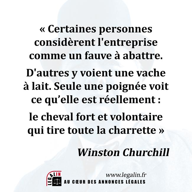L’entreprise vue par Winston Churchill :"Certaines personnes considèrent l'entreprise comme un fauve à abattre. D'autres y voient une vache à lait. Seule une poignée voit ce qu'elle est réellement : le cheval fort et volontaire qui tire toute la charrette."