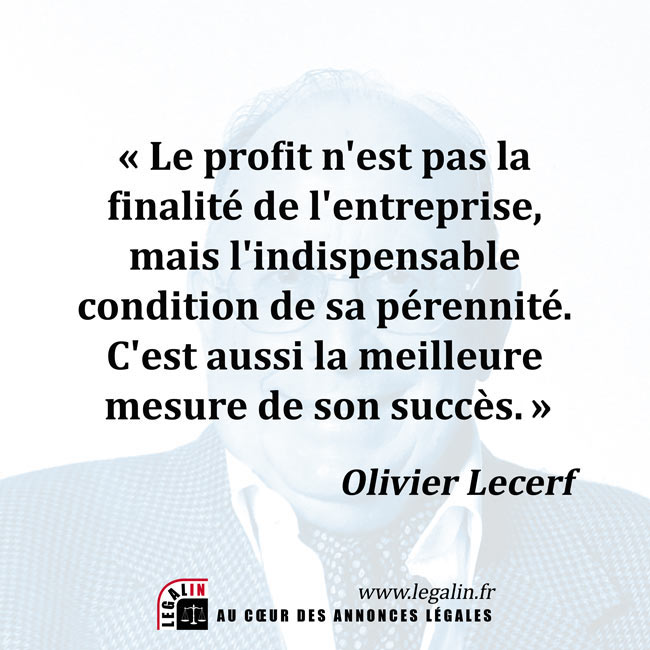 Citation - Le point de vue d'Olivier Lecerf sur le succès d'une entreprise : "Le profit n'est pas la finalité de l'entreprise, mais l'indispensable condition de sa pérennité. C'est aussi la meilleure mesure de son succès."
